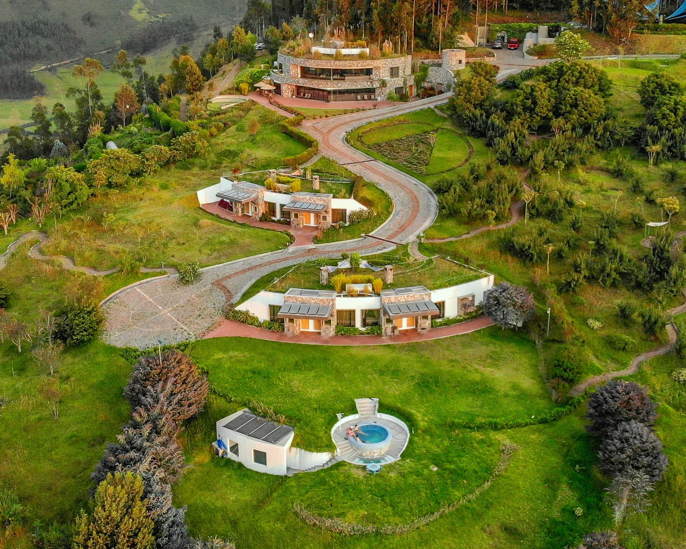 María Teresa Ponce y su padre estaban en medio de la construcción de SachaJi, la “Montaña Amada”. La visión de Tere para SachaJi también llegó a través de la meditación. En la ladera del Cerro Cusin, frente al volcán Imbabura (de más de 4.500 metros), Tere se sentó donde hoy se alza la Casa Grande y supo que ese era el sitio para construir la elegante estructura circular del centro.
